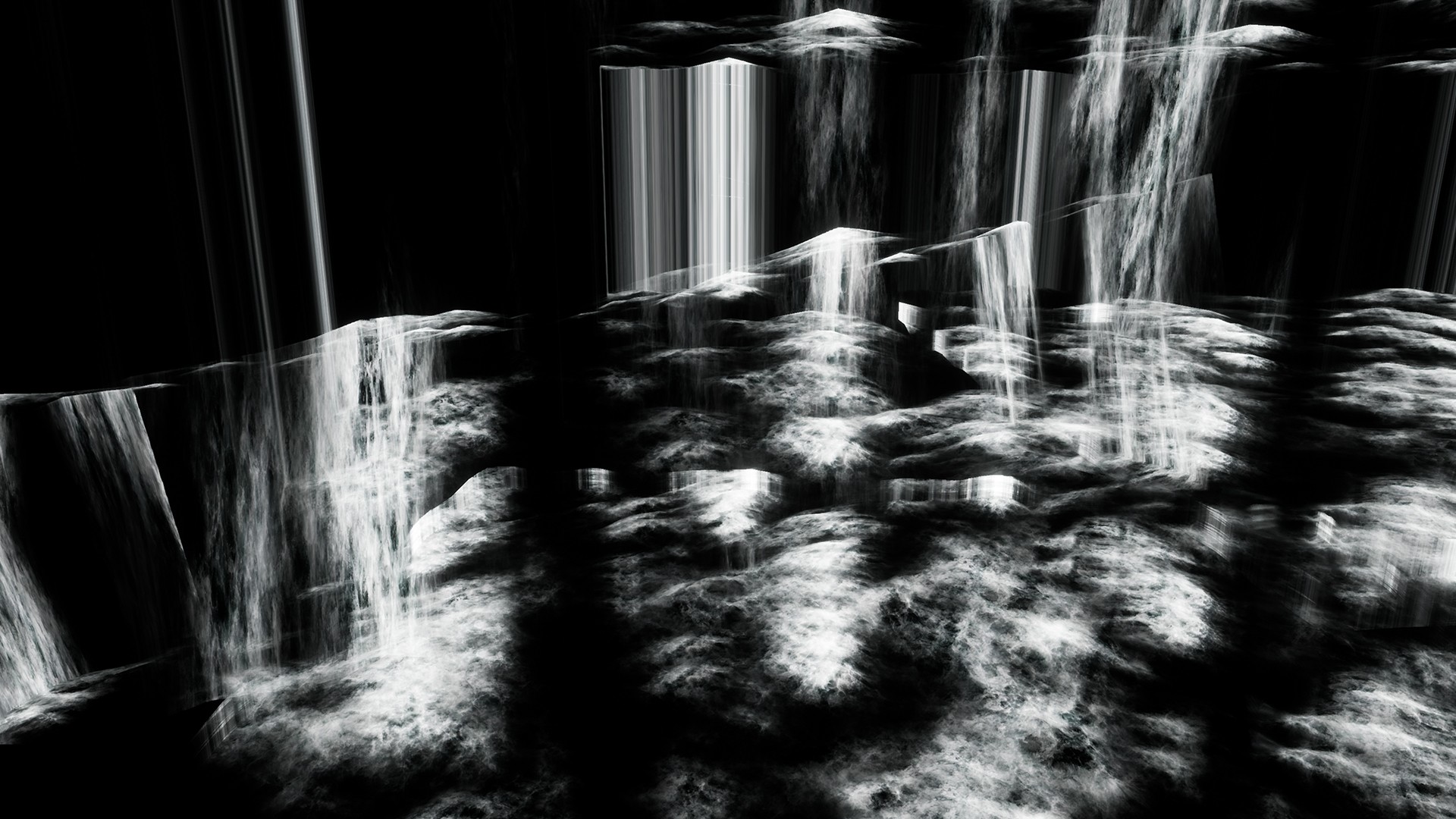 Inspired by the 17th-century philosophy of Robert Fludd, this installation offers an exploration of the emerging realm of Entity: from dense, dark matter (hyle), through the abyss (abyssus) and chaos, to the ethereal function of fog (caligo).